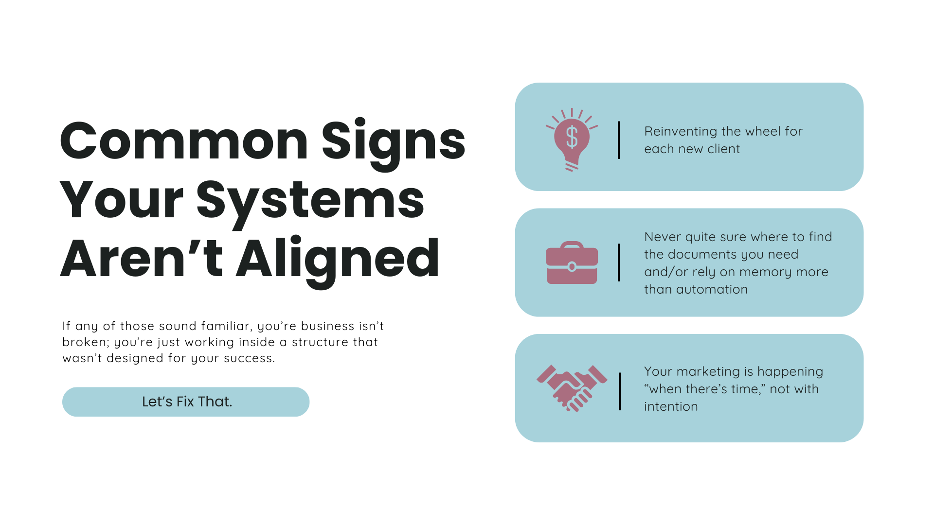 Misaligned systems are sneaky. They can look productive on the surface, while silently draining your time and energy underneath.